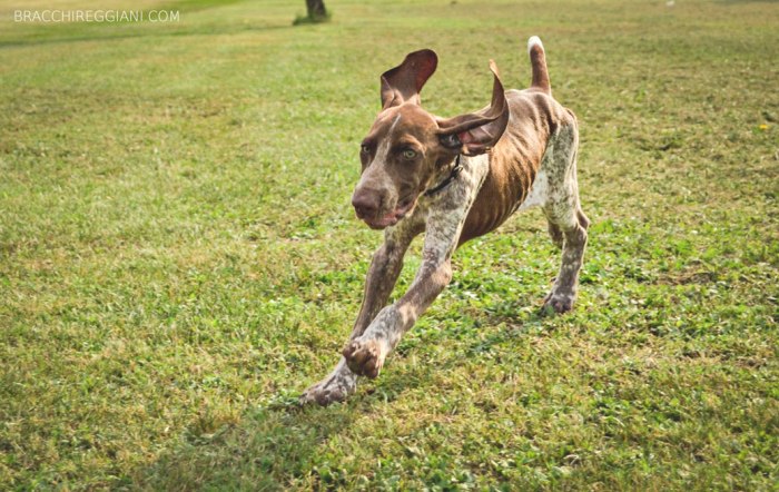 La bracchetta dopo 15 giorni in terra reggiana, si sta rivelando una cucciola molto intelligente e vivace, tavolta con tendenze demoniache.