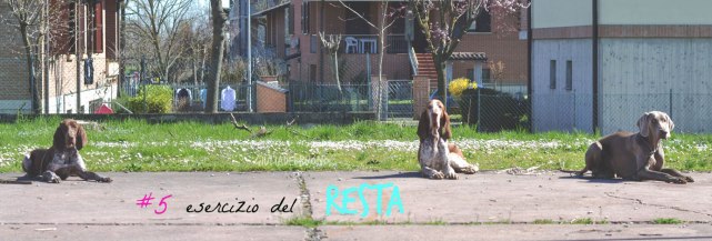 Non credo sarà mai di qualche utilità insegnare al cane ad attendermi da qualche parte legato ad un palo, il mio animo tachicardico-per-la-minima-cazzata mi impedisce anche solo di pensare di lasciare la mia Ciccia fuori da un locale tutta sola ed incustodita, ma ci siamo comunque preparati all’evenienza con questo esercizio, premiando gli stati d’animo tranquilli e non i mugolii isterici.