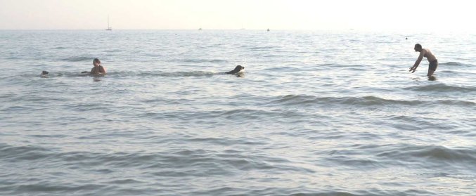 A quel punto stimolarlo ad esempio lanciando un legnetto in acqua inizialmente vicino, non mirando alla Sardegna!, poi sempre più lontano incitandolo a recuperarlo, quindi sommergerlo di complimenti quando affronta la paura e si butta!