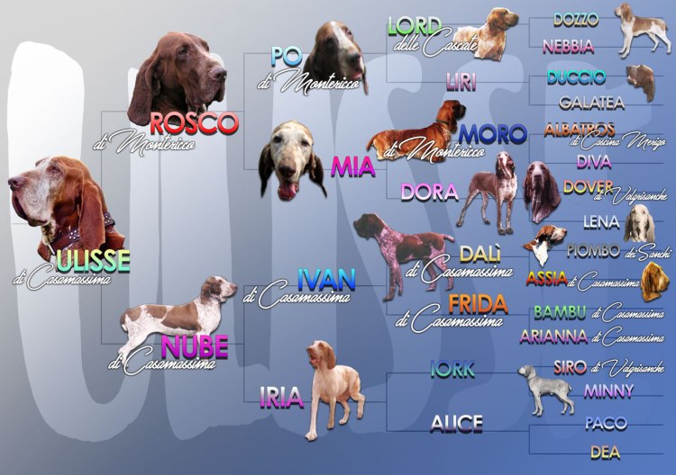Cionondimeno, se per il PhotoStandard l’intento era essenzialmente auto-didattico (proprio nel senso che l’ho fatto per studiarlo e per farlo l’ho studiato), il Pedigree fotografico ha visto la luce con uno scopo molto più personale, se vogliamo anche frivolo: mettere insieme i tasselli del puzzle genetico di quei mangiapane a tradimento dei miei bracchi per, niente, contemplarlo.