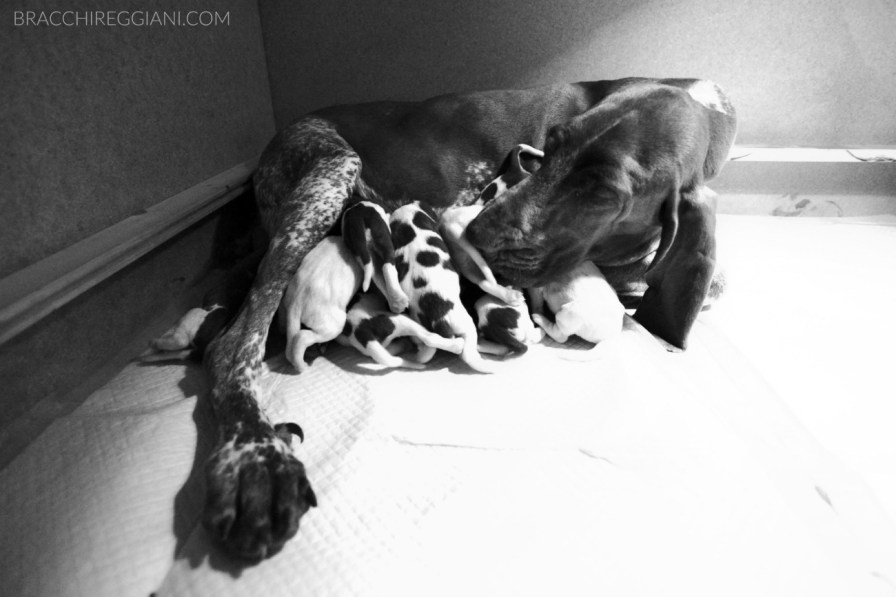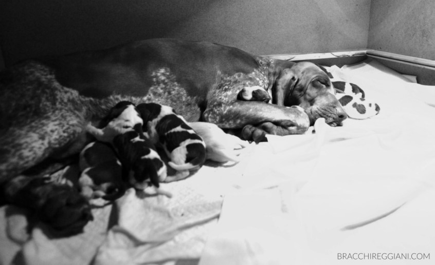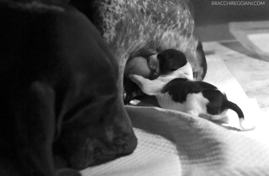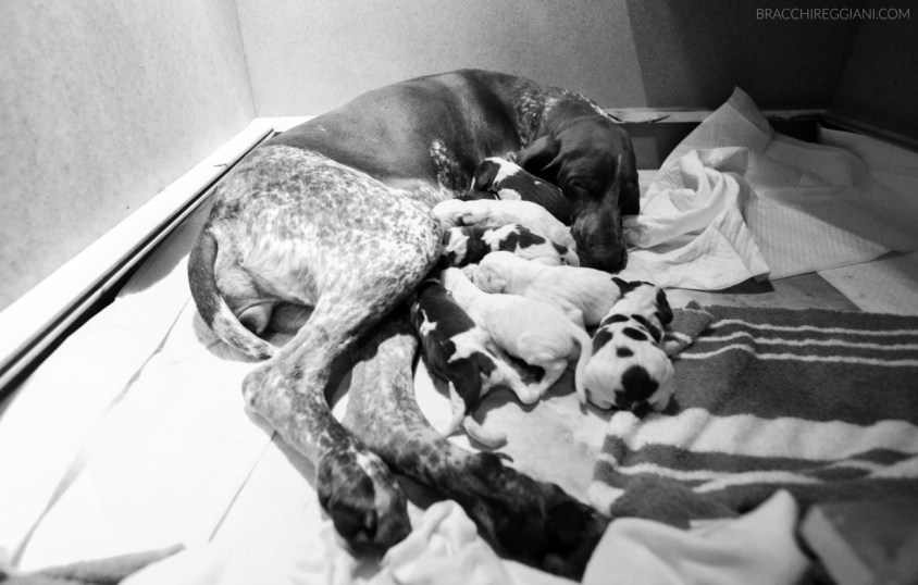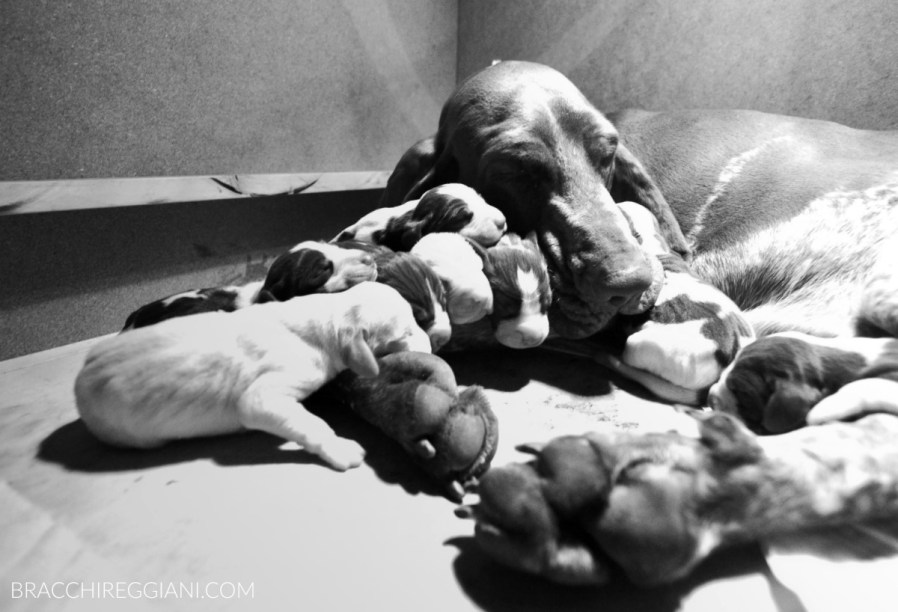 In verità vi dico che io ero stata l’unica a ventilare l’ipotesi di un parto imminente, perchè sarà anche vero che io di bracchi e allevamento so ancora pochissimo, però con la stessa sicurezza di quando ci confermarono la gravidanza, ero più che convinta che il giorno dopo sarebbe stato quello giusto.
