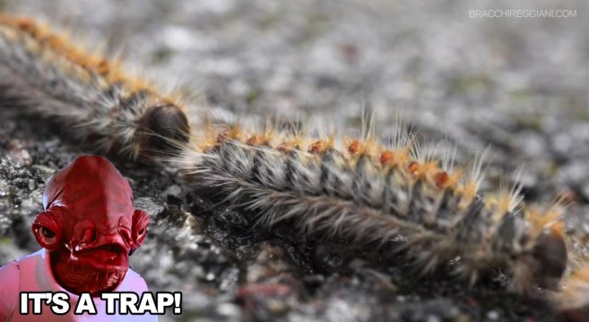 Un bambino curioso, un adulto ignorante (nel senso che ignora, cit.) o appunto un cane che, affascinato dalla processione di bestioline colorate, decida di avvicinarsi al punto di toccarle, leccarle o anche solo inspirare la peluria bianca, può restare gravissimamente ferito dalle sostanze altissimamente urticanti in essa contenute, mentre in caso di ingestione, per via della necrosi istantanea generata nei tessuti, senza un celere intervento medico, le conseguenze possono essere letali.