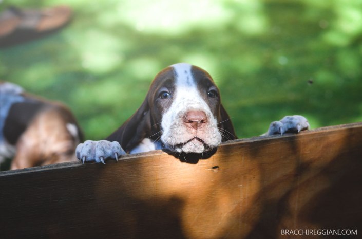 E infatti lei li fregava tutti così quelli che venivano a trovarci e se ne innamoravano istantaneamente, prima di vederla alzarsi su due zampe ancorarsi al bordo del recinto e, sotto gli sguardi interdetti dei fratelli grandi il doppio, catapultarsi fuori per trotterellare via, verso l’aperta campagna in cerca di guai.