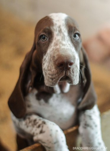 Al di là del valore morfologico, Baskerville era soprattutto un cucciolo al quale non si poteva non voler bene e che in pochissimo tempo ha lasciato un segno indelebile nel cuore di tutti noi. Anche per questo, chiedere alla mia famiglia di separarsi da lui per affidarlo a Giovanni e Simone fu un gesto sofferto, che ho saputo perdonarmi solo nell’istante in cui uno splendido Bracco Italiano si è fatto largo tra i tavoli dell’agriturismo accogliendoci con la disinvoltura dell’oste consumato.