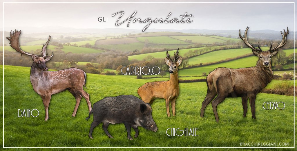 Ungulati: a questa categoria appartengono daini, caprioli, cervi e cinghiali, animali che non rientrano nel carniere del Bracco Italiano ma che, essendo caratterizzati da una forte presenza olfattiva, spesso rappresentano un problema per i nostri cuccioloni i quali, per fattori genetici e/o per scarso addestramento, possono esserne distratti e portati fuori mano.