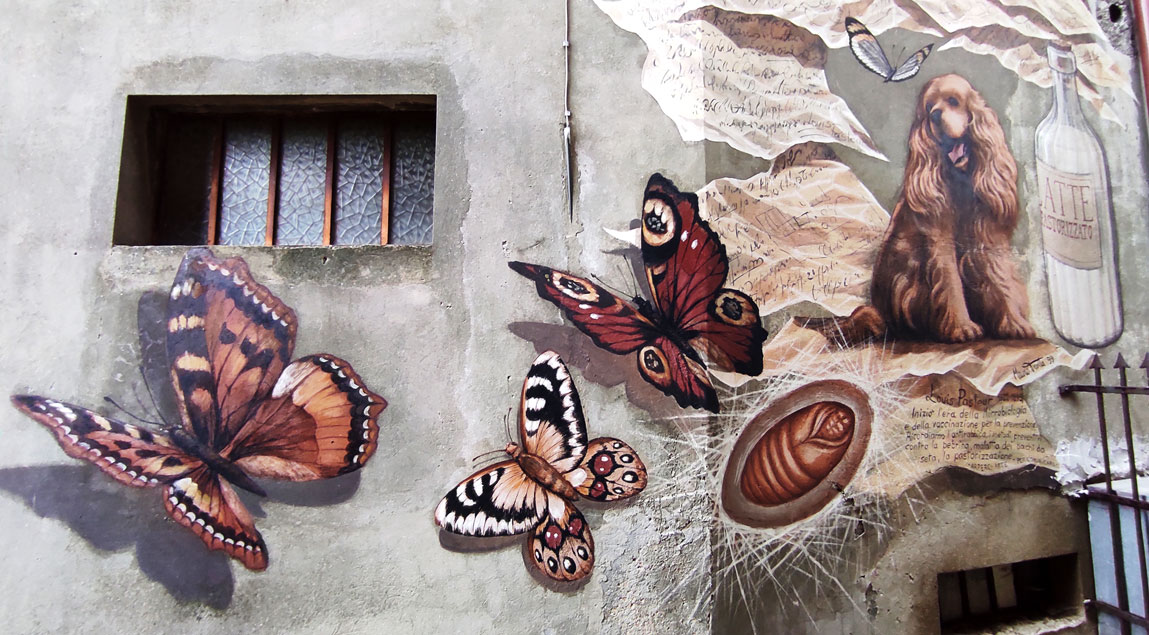 Basta imboccare una qualsiasi tra le vie del centro per scoprire che questo piccolo borgo è in realtà un museo a cielo aperto, che ospita decine di murales dipinti sulle facciate degli edifici più antichi, infondendogli nuova vita e creando un’atmosfera vivace e divertente, capace di illuminare anche le giornate più grigie.