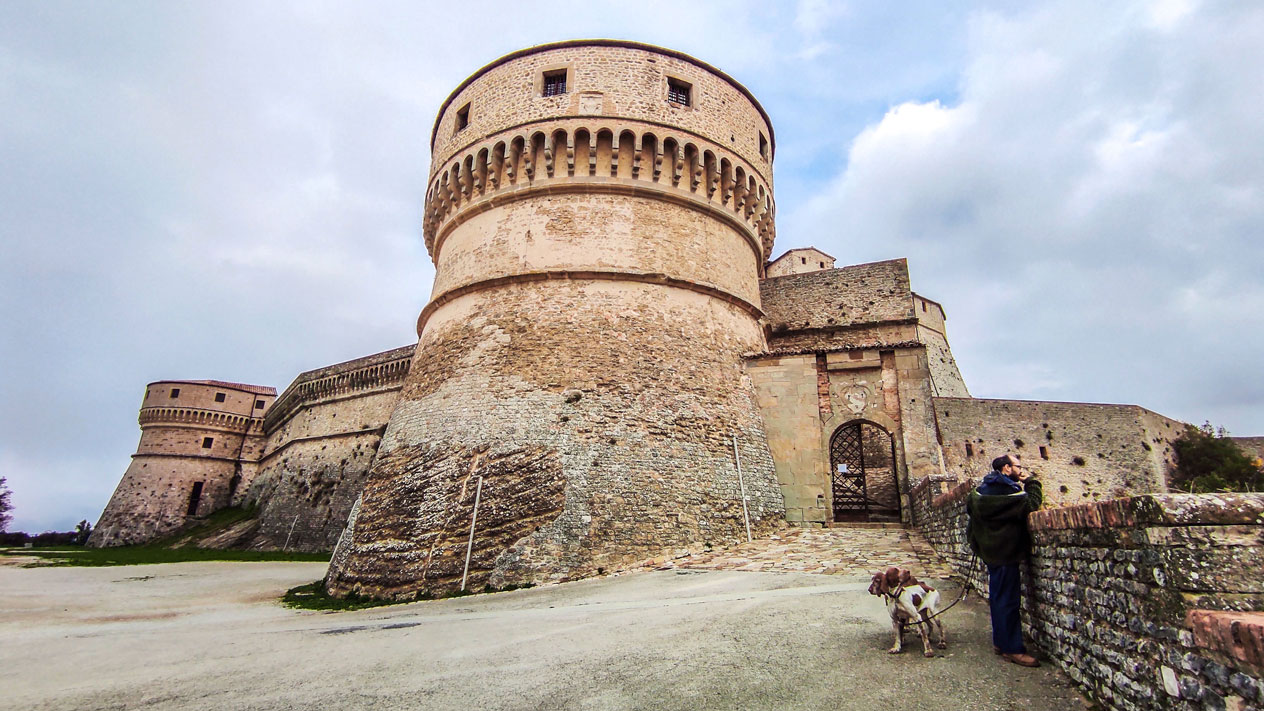 Ad una trentina di km da Rimini, incrostata su un masso roccioso, troviamo San Leo, uno dei borghi più belli e antichi d’Italia. La sua fama è legata a vicende belliche, religiose e alle personalità che ha ospitato nei secoli, tra cui Dante Alighieri e Francesco d’Assisi ma anche Felice Orsini e il Conte di Cagliostro, che finirono i loro giorni prigionieri della magnifica fortezza rinascimentale, visitabile coi cani.