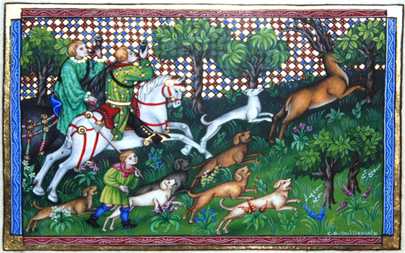 1000 – 1492Siccome abbisognavan cani per far levare la selvaggina da piuma e da pelo, innanzi agli uccelli di rapina, se ne incontraron di quelli che fermavano materialmente il selvatico prima di farlo fuggire. Si coltivò cotesta disposizione, prolungando l’appostamento sino al fermo assoluto e si ottenne, con siffatto mezzo, il cane coricantesi, vale a dire il cane che si curva innanzi alla selvaggina che ferma per lasciarsi coprire con essa sotto la rete.