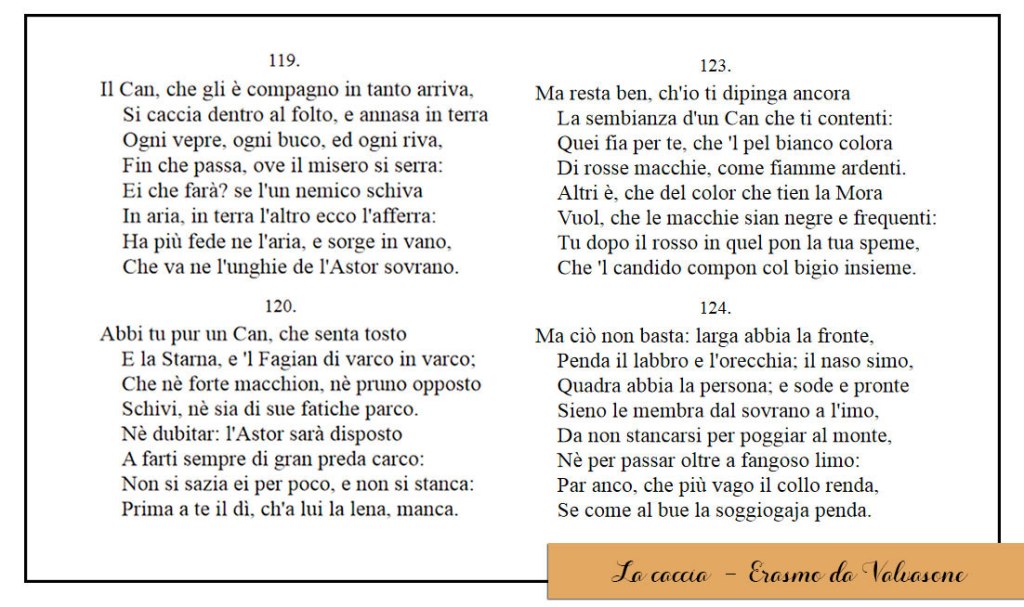 Un ritratto fedele e già familiare del bracco di allora ce lo offre Erasmo da Valvasone nel celebre poema intitolato “La caccia” (1591).