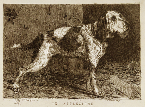 Giovanni Battista Quadrone – In attenzione (1870) Dal 1850 e per circa settant’anni infatti, questa numerosissima famiglia selezionerà in purezza il capitale cinofilo creato da Giovanni, pretendendo e fissando molte delle caratteristiche che tutt’oggi reputiamo importanti indici di tipicità, come la struttura robusta, l’indole docile e la tendenza a cacciare sempre al trotto, velocemente a testa alta e muso al vento. Anche se probabilmente il mantello color tonaca di frate, è la peculiarità che più di tutte vi suonerà familiare.